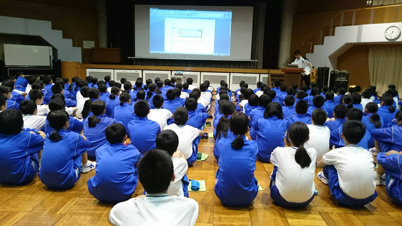 朝のつどいで学校紹介をしました。