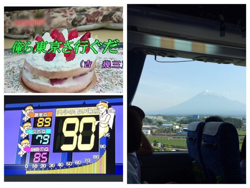 採点カラオケで盛り上がりながら、バスは富士山を通過しました。