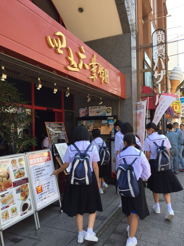 1組横浜中華街に着きました。今から肉まん、餃子を作ります。