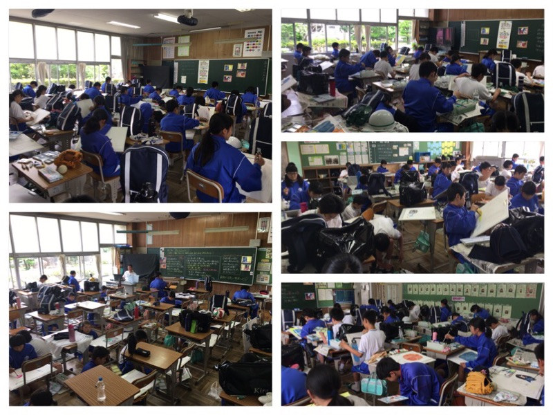 教室で使い慣れたものを描いていきます。形や色をよく見て。