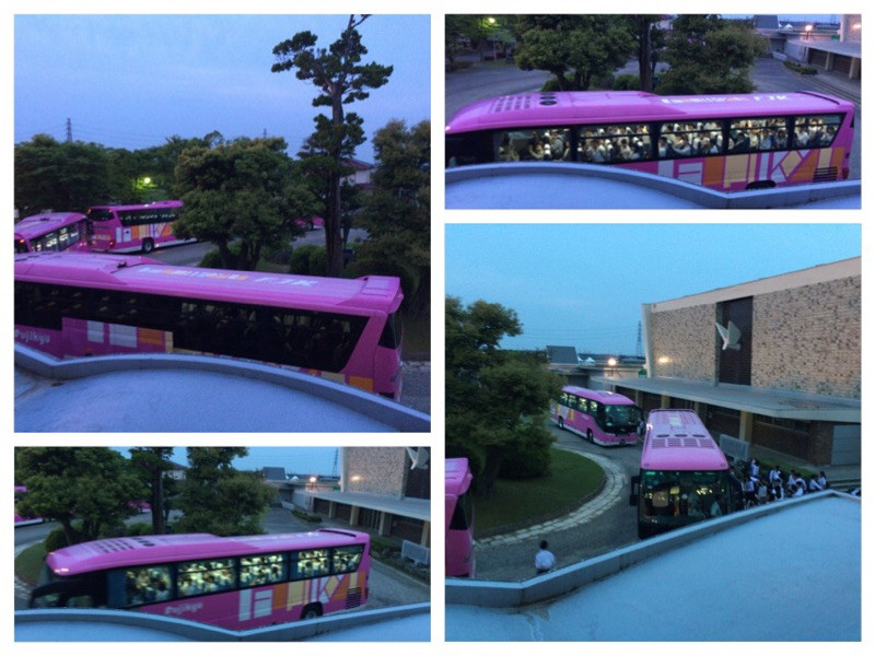 バスの中は、まだ盛り上がっているクラスあり、まったり過ごすクラスもあります。