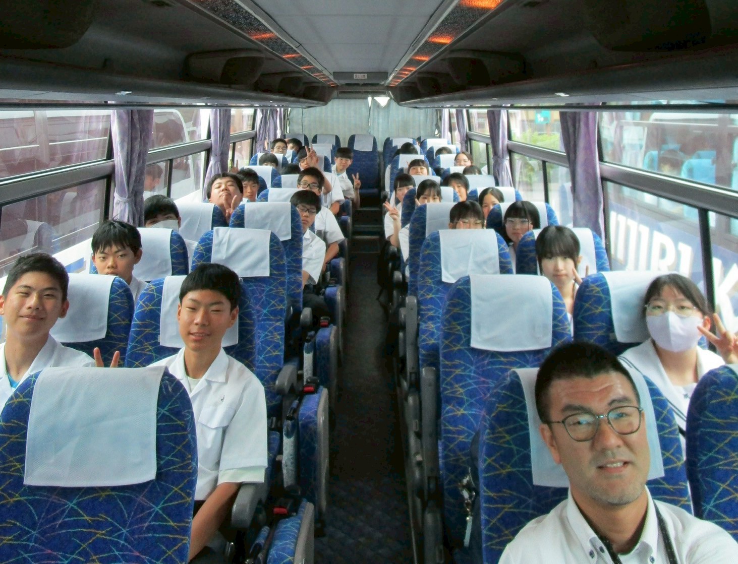 写真は、電車に乗って行った生徒の様子です。