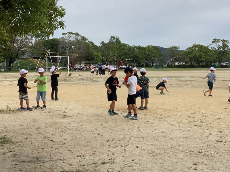 秋の植物を探したり、風にのせて紙飛行機を飛ばしたりしました。
