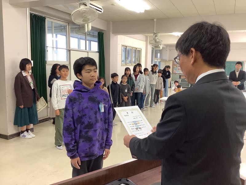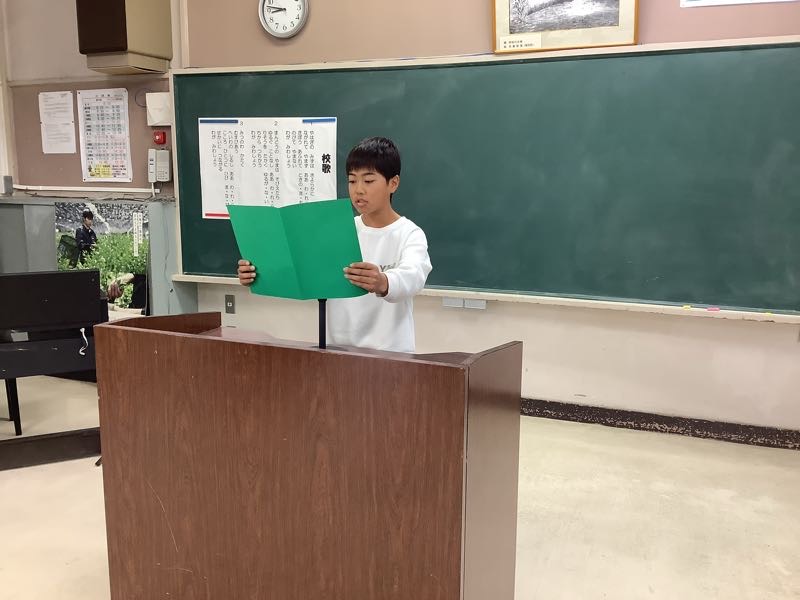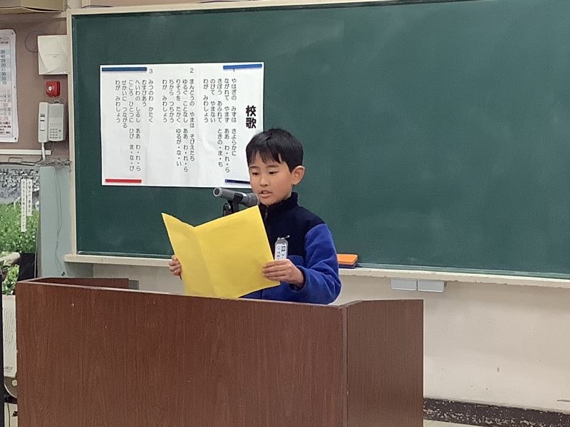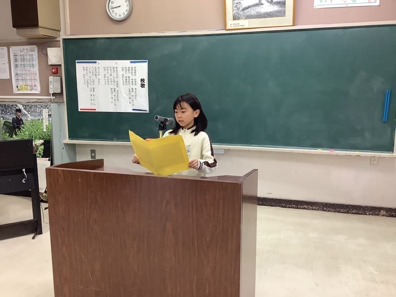 2学期の終業式を行いました。はじめに、3人の代表児童が2学期の振り返りを発表しました。