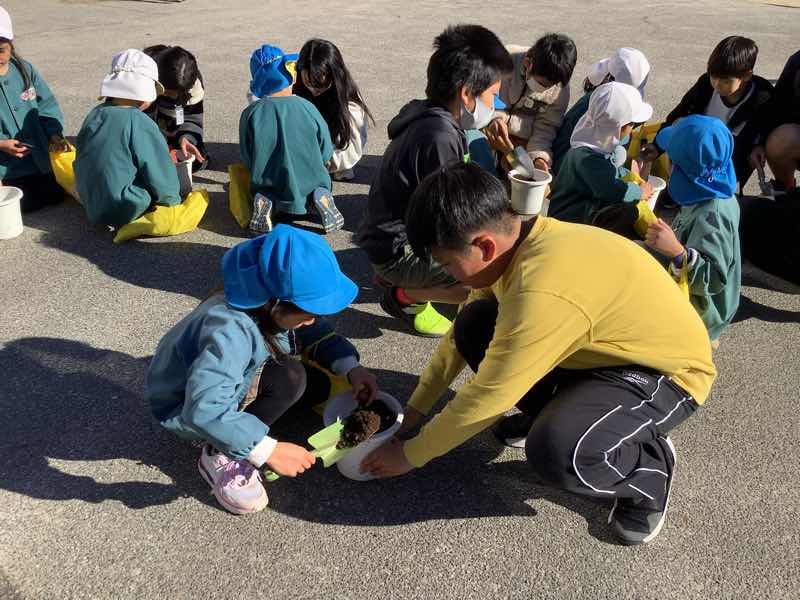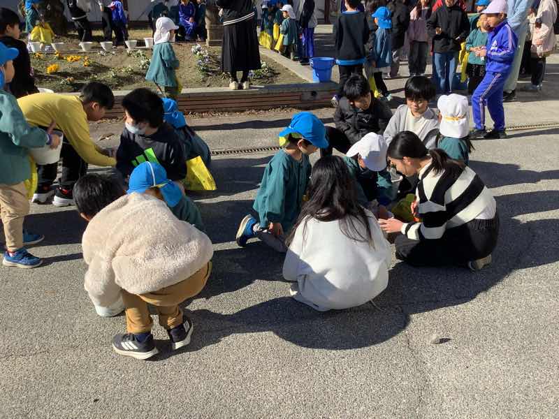 三和保育園の年長さんといっしょにチューリップの球根を植えました。