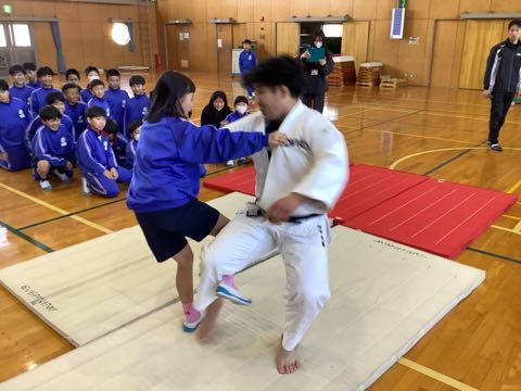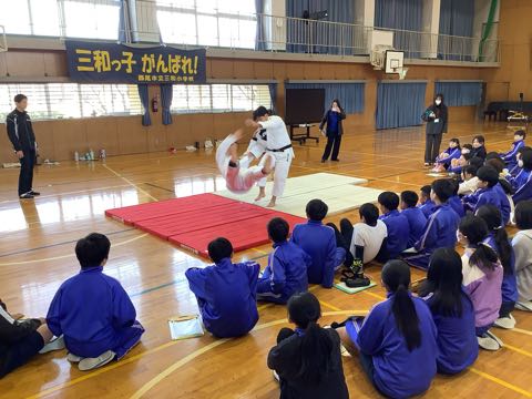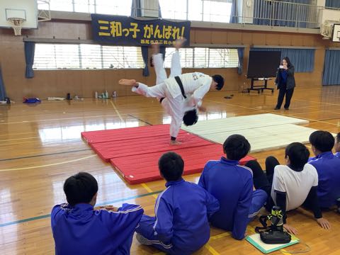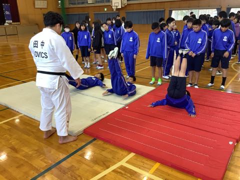 株式会社アドビックス柔道部より、田中太基選手と前田崚登選手をお招きして、柔道の体験と講話をしていただきました。