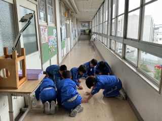 4年2組の有志による「遊昼掃除隊(遊友タイムと昼放課に活動)」が遊友マラソン後にも床磨きを黙々とがんばっています。2組の前だけでなく、防災の部屋の前の廊下もやってくれています。MIWAー1グランプリに向けて、自分たちで動画の撮影もしています。