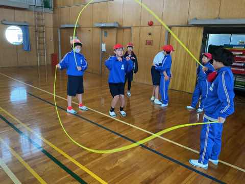 みつわ学習発表会で披露したダブルダッチを、クラスみんなで体験しました。はじめは縄に入ることもできませんでした。経験した子たちがアドバイスや手本を見せながら行い、だんだん跳べる子が増えてきました。
