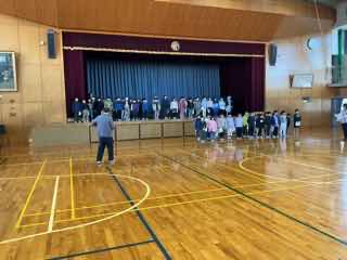 学習発表会に向けて、体育館で並んで場所の確認をしました。
