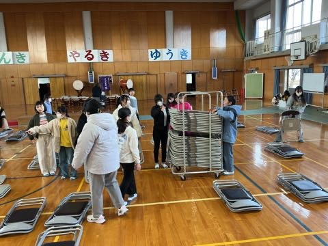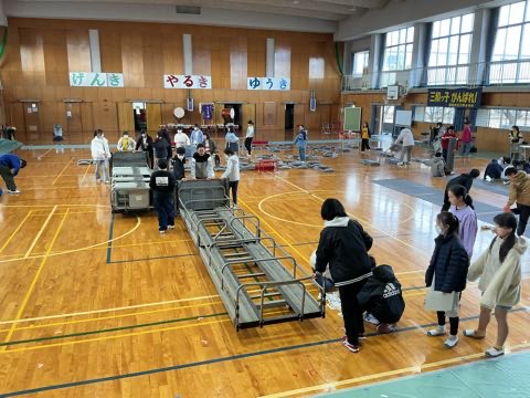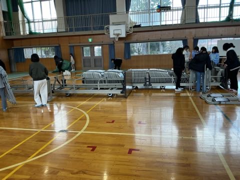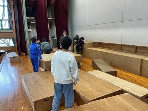 今日はみつわ学習発表会。5時間目には、6年生を中心に、会場の片付けを行いました。