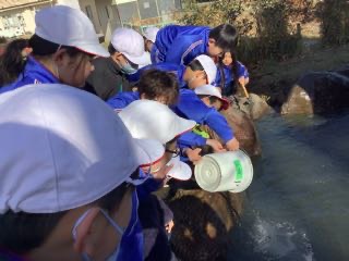 地域の用水路でつかまえた魚たちを、ゆうき池に入れました。遊友タイムにも、そうじをしたり、協力して片付けをする姿がとてもすてきでした。