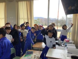 最後の写真は、お昼休みに雪が降って大喜びをしている子どもたちの様子です。