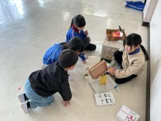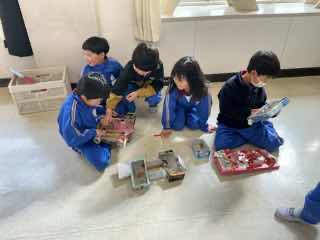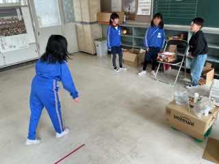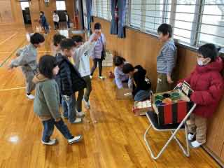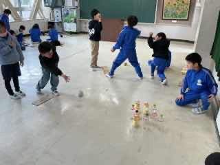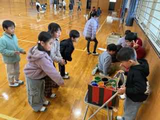 先日、一年生を招いておもちゃ祭りを行いました。たくさんの子に楽しんでもらえるよう、おもちゃや遊び方を工夫して準備をしました。当日は、欠席も多かったことから、今日は改めてクラスでおもちゃ祭りを行って、みんなでおもちゃ遊びを楽しみました。自分たちが遊ぶだけでなく、友達を楽しませられるように声をかけて、盛り上げていました。