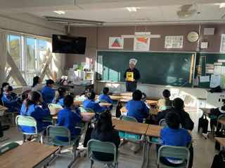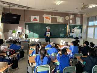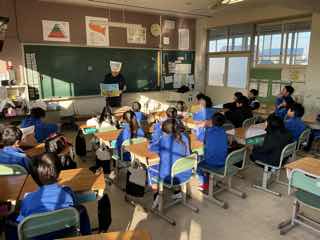 朝の読み聞かせで、ねこのピートが3年3組にやってきました!