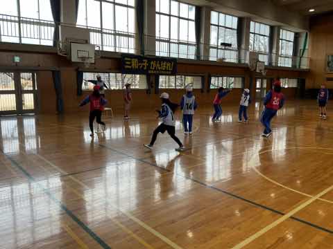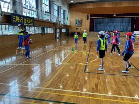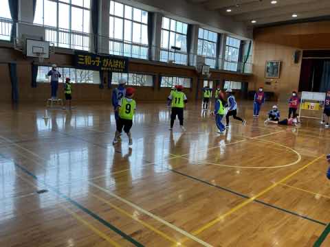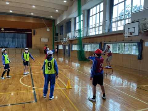 体育の授業でポートボールを行いました。通常のルールより少ない人数で前・後半に分かれて試合形式で進めました。チームでどうすれば点が取れるのか考えながら楽しくプレーすることができました。