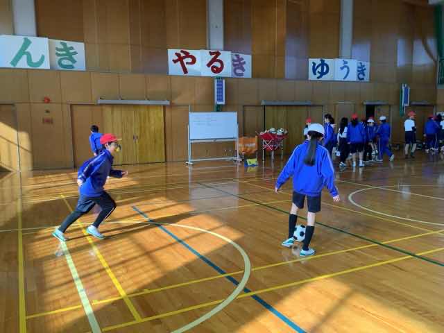 プロサッカー選手の原耕太郎選手(ヴィアティン三重)にゲストティーチャーとして来ていただきました。 原選手と一緒に楽しくゲームをする中で、ボールを持ってないときの動き(オフザボール)をみんなで学びました。