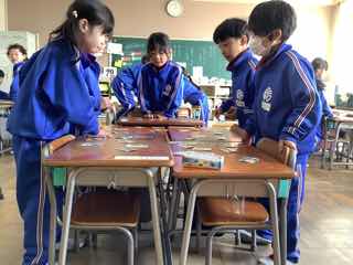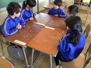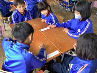 生活科で、かるたやけん玉、おはじき、あやとり、お手玉といった遊びを楽しんでいます。