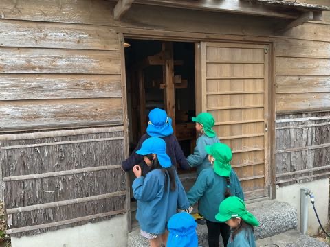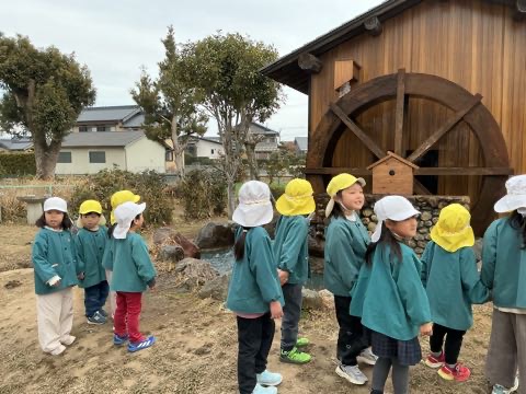 今日は、三和保育園の子どもたちが、水車の見学に来ました。