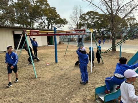見学の後は、小学校の遊具で遊んでいきました。ぜひまた遊びに来てほしいですね。
