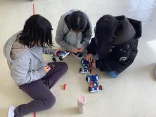 モーターカーを組み立て、走らせました。