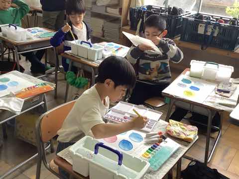 1年生で絵の具を扱うのはこれで最後です。2年生で使う日が楽しみです。