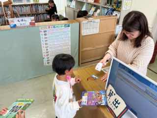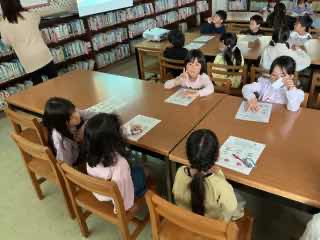 今日は1年生にとって、初めての図書オリエンテーションでした。図書室での過ごし方、本の借り方や返し方、本の扱い方についてのお話を聞き、早速本を借りました。