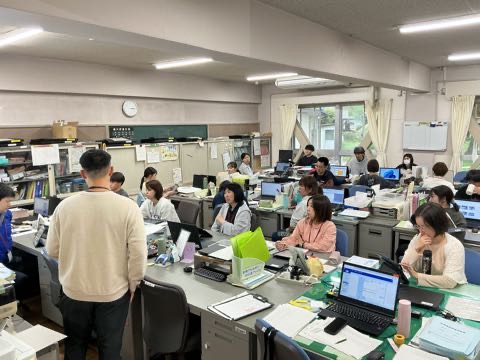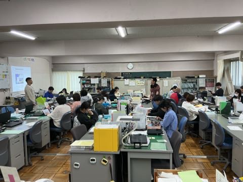 毎週水曜日の授業後は、職員室でICT研修を行っています。