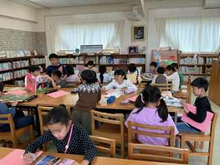 図書館オリエンテーションがありました。本の借り方や返し方だけでなく、背表紙に貼ってあるラベルの説明を聞き、どこにどのような本があるのかを教えていただきました。 最後には、早速お気に入りの一冊を見つけて読みました。