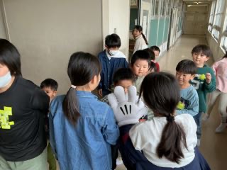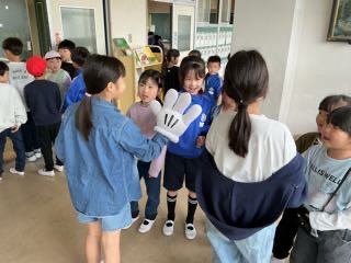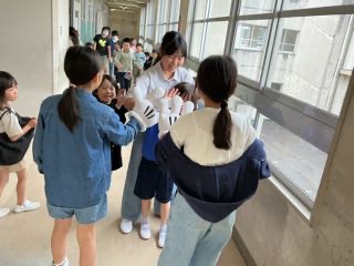 ハイタッチしながら元気いっぱいのあいさつが響いています。