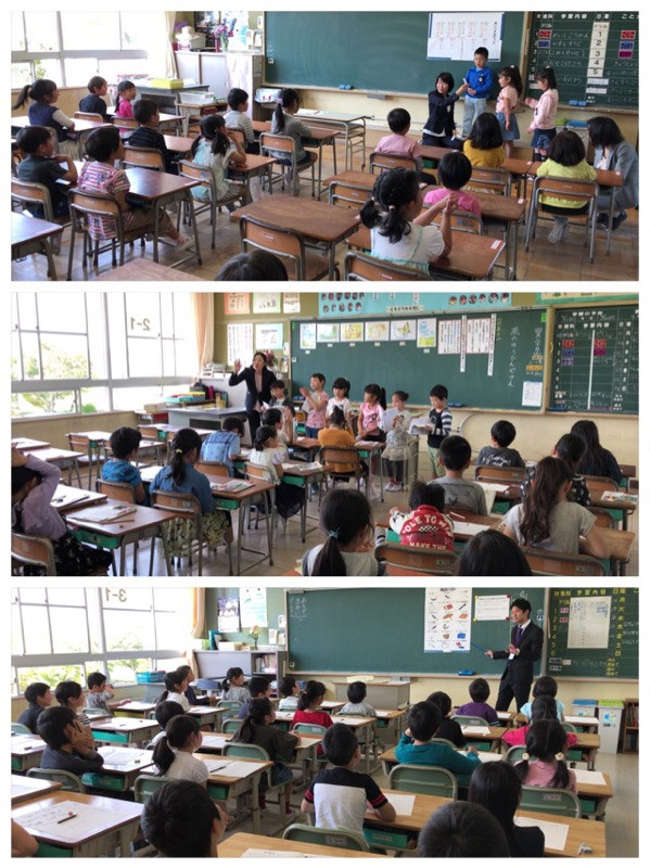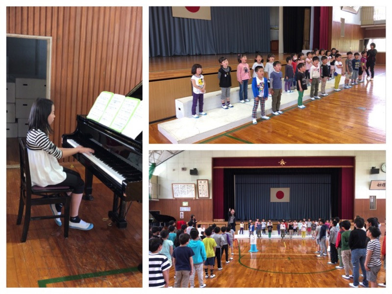 1年生と6年生が手をつないで入場した後は、1年生の自己紹介です。