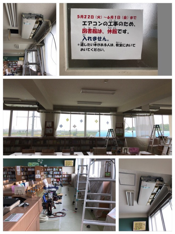 いよいよエアコンが付きます。その工事のため、6/1(金)まで図書室が利用できなくなってしまいました。