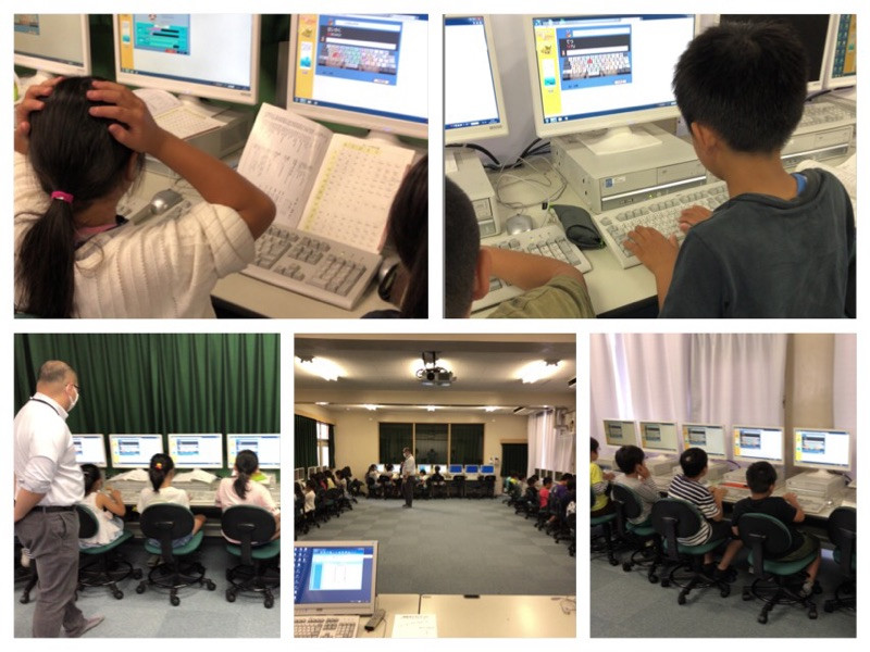 今日はラインズの岸田情報支援員さんにお越しいただき、4年生が、タイピングの練習をしました。