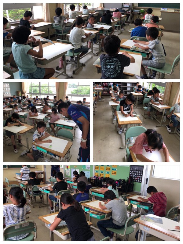 とっても嬉しそうな表情の自分の写真を見ながら、早速下絵をかきはじめています。