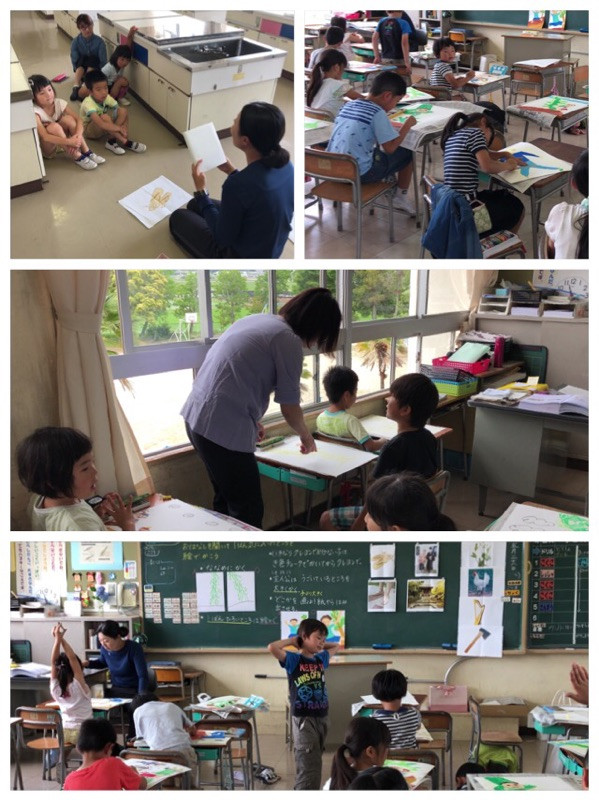 1時間目に「ジャックと豆の木」「こぶじいさま」「ガリバーの冒険」「おにのおくりもの」の中から、一つ選んでお話を聞きました。