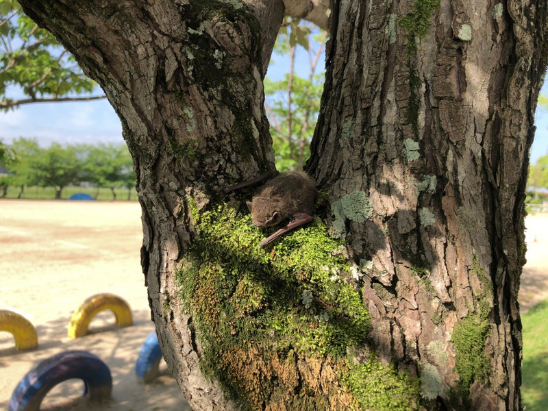 校庭の木に乗せておきました。