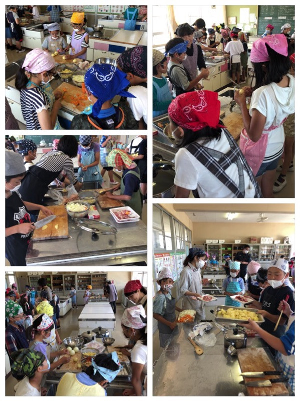 5年生が、林間学習の練習でカレー作りにチャレンジ中です。