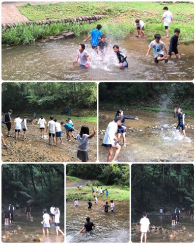 林間学習 冷たい水にも負けず、元気いっぱい川遊びです。