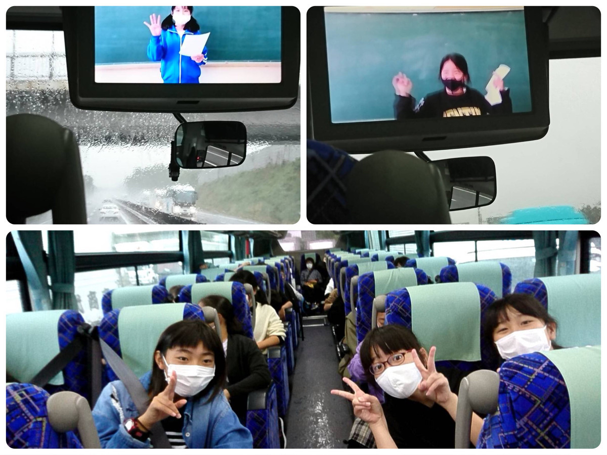 バスの中では、とても面白い自作動画クイズを、声を出さないように見て楽しんでいます。