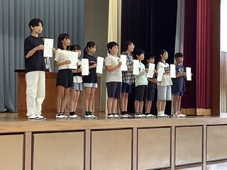 後期の児童会役員・委員長・学級委員の任命をしていただきました。後期の活動を中心となって進めていってくれる人たちです。前期の活動を引き継いで、がんばってほしいです。 校長先生から、ただがんばるのではなく、「どうがんばるか」が大事ですとお話をいただきました。後期の自分の目標を決め、ゴールに向かい活動内容をはっきりさせ、自分たちから積極的に活動をしていってください。 室場っ子の活躍を楽しみにしています。