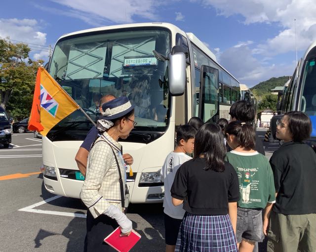 三十三間堂見学終了しました。すべての見学が無事終了しました。帰りのバスはゆっくりDVDを見ながら帰ります。みんな元気です。今のところ予定通りの時刻発です。