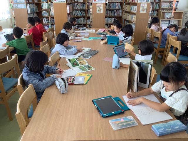数週間前から図書室へ行き、いろいろな本の中から気に入った動物を選び、クイズ作りを進めてきました。