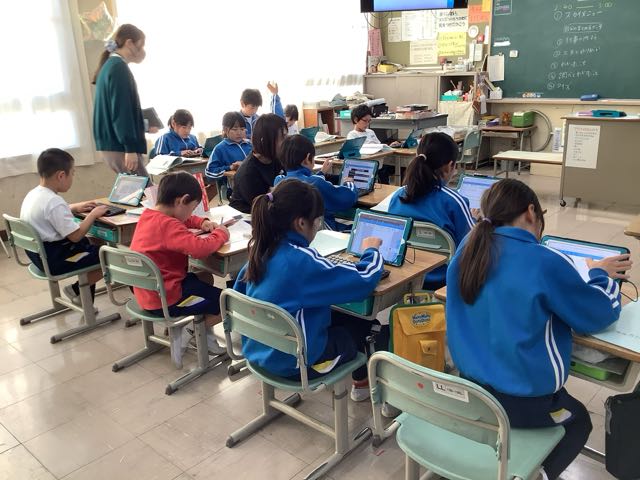 3年生、総合的な学習の時間の授業。3年生は「西尾・室場のお仕事図鑑」の学習をしています。