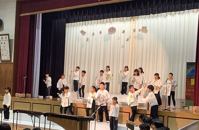 本日の学習発表会にお越しいただいた保護者・地域の方々。お忙しい中、足を運んでいただきありがとうございました。保護者の皆様には練習の段階から快くご協力いただいたことにも感謝いたします。
