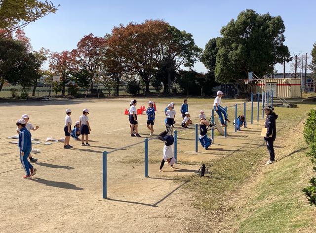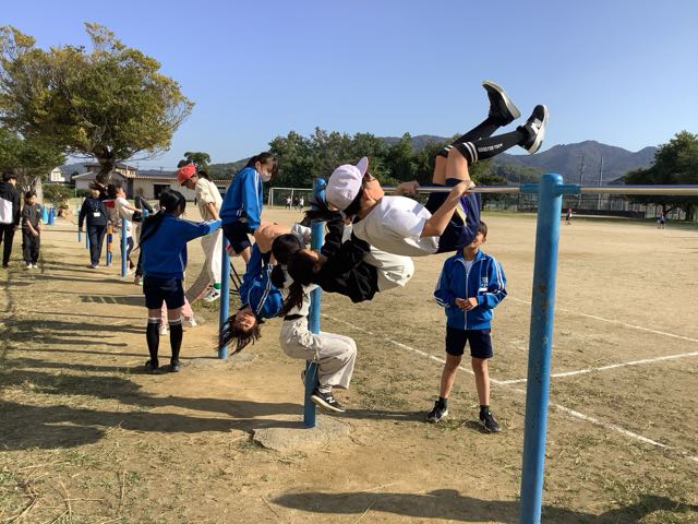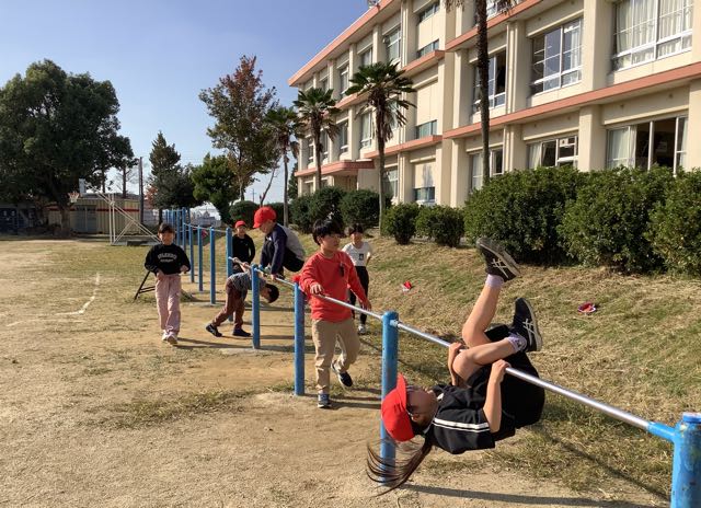 今日は秋晴れの暖かい日で鉄棒の練習にぴったりの天気でした。