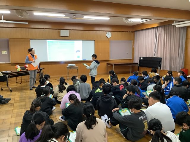 4・5年生を対象に人権教室がありました。内容は、「ワークショップ『10の権利』ーみんな違って みんないいー」。自分だけの部屋を持つ権利、家族や友達に愛される権利、安全な家に住む権利、必要な食べ物を食べたり水を飲んだりする権利など「10の権利」から、なくても我慢できる権利を選んでいき、残った三つの権利について、なぜ大切か理由を考えました。「食べないと生きていけないから」「何が起こるかわからないから安全が大切だから」「遊べなくなるから」「リラックスできなくなるから」など、さまざまな意見がありました。どの権利を大切に思うかは人それぞれで、「みんな違ってみんないい」ということを教えていただきました。