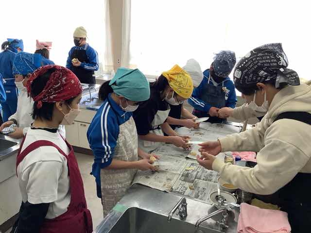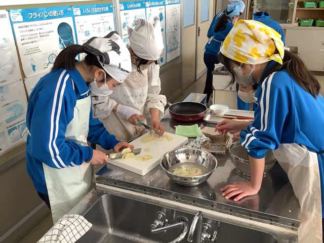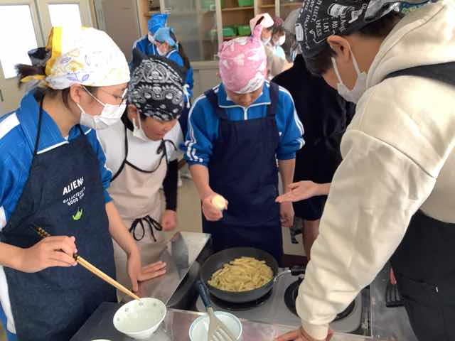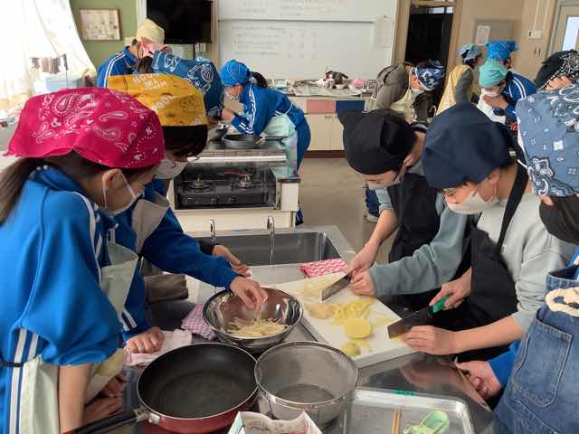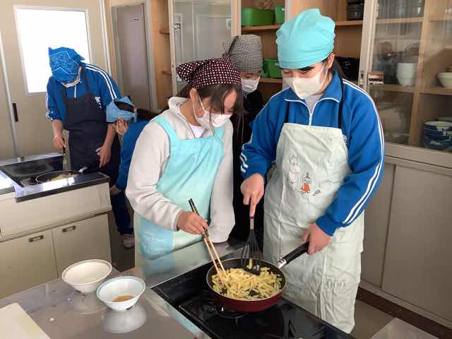 6年生が「じゃがいもを使った料理」の調理実習を行いました。包丁でじゃがいもの皮むきに挑戦です。家で練習してきた子もいて、なかなか上手にむいていました。 皮がむけたじゃがいもは、千切りや短冊切りにして「じゃがいものガレット」「じゃがいものコンソメ炒め」にしました。家でも料理のお手伝いなどで挑戦していくとよいですね。