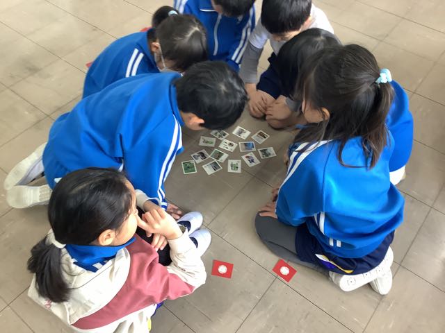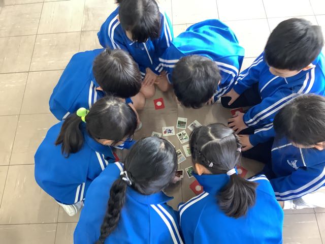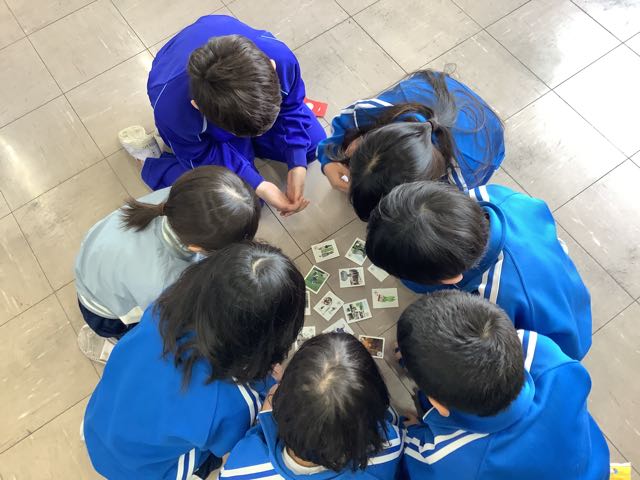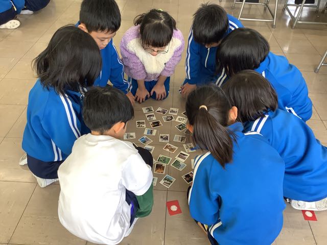 本日、新春かるた大会をしました。今日使ったかるたは、西尾の海や山、まち、歴史と文化などがまとめられた「まるっとみどころ西尾かるた」です。かるた大会は、3つのグループに分かれて、同時に行いました。「はい!」という声が響き渡る、白熱した勝負でした。1番多い子は、13枚も取ることができました。とても盛り上がっていたので、クラス会などでも取り組んでいきたいと思います。
