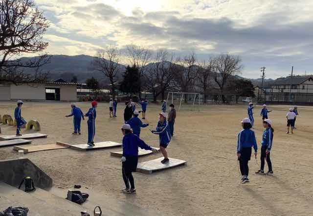 マラソンが終わって、体育では縄跳びに取り組んでいます。 前跳び、後ろ跳び、あや跳び、二重跳びなどの個人の技の練習をしたり、大縄で連続何回跳べるかに挑戦したりしています。 6年生の大縄の練習では、「1、2、3・・」と数える大きな声が聞こえました。今日は、新記録が出たでしょうか。 6年生は、卒業まであと34日。残り少ない小学校での日々を仲間と楽しく過ごしていきましょう。