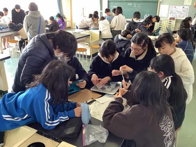 室場ホタルクラブの水質検査を実施しました。深篠川と平原ゲンジボタルの里の水のpHやCOD、透視度などを調べました。今日は今年度の4回の水質調査の結果のまとめもしました。 その後、ゲンジボタルの幼虫のエサであるカワニナを水盤に追加しました。3月24日に幼虫の拾い出しをします。それまで、しっかり世話を続けていきます。