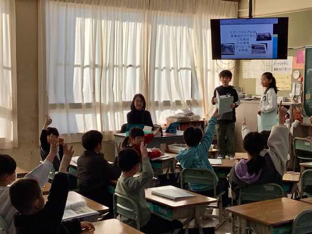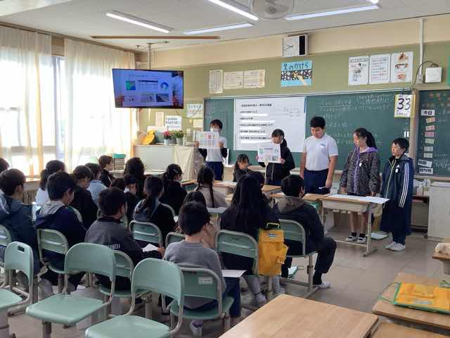 授業参観を実施しました。1年生は昔遊びの発表、2年生はメディアと上手に付き合う方法を考える授業、3年生はお仕事調べについてiPadでまとめたものの発表、4年生はブックトーク、5年生は米作りのまとめの発表、6年生は法や決まりについて考える道徳の授業、たけのこは、節分のお話を聞いたり、プログラミングをしたりする授業でした。日頃の学習の成果を家族に見せようとがんばる子供たちの姿がありました。 保護者の皆様、たくさんのご参加ありがとうございました。
